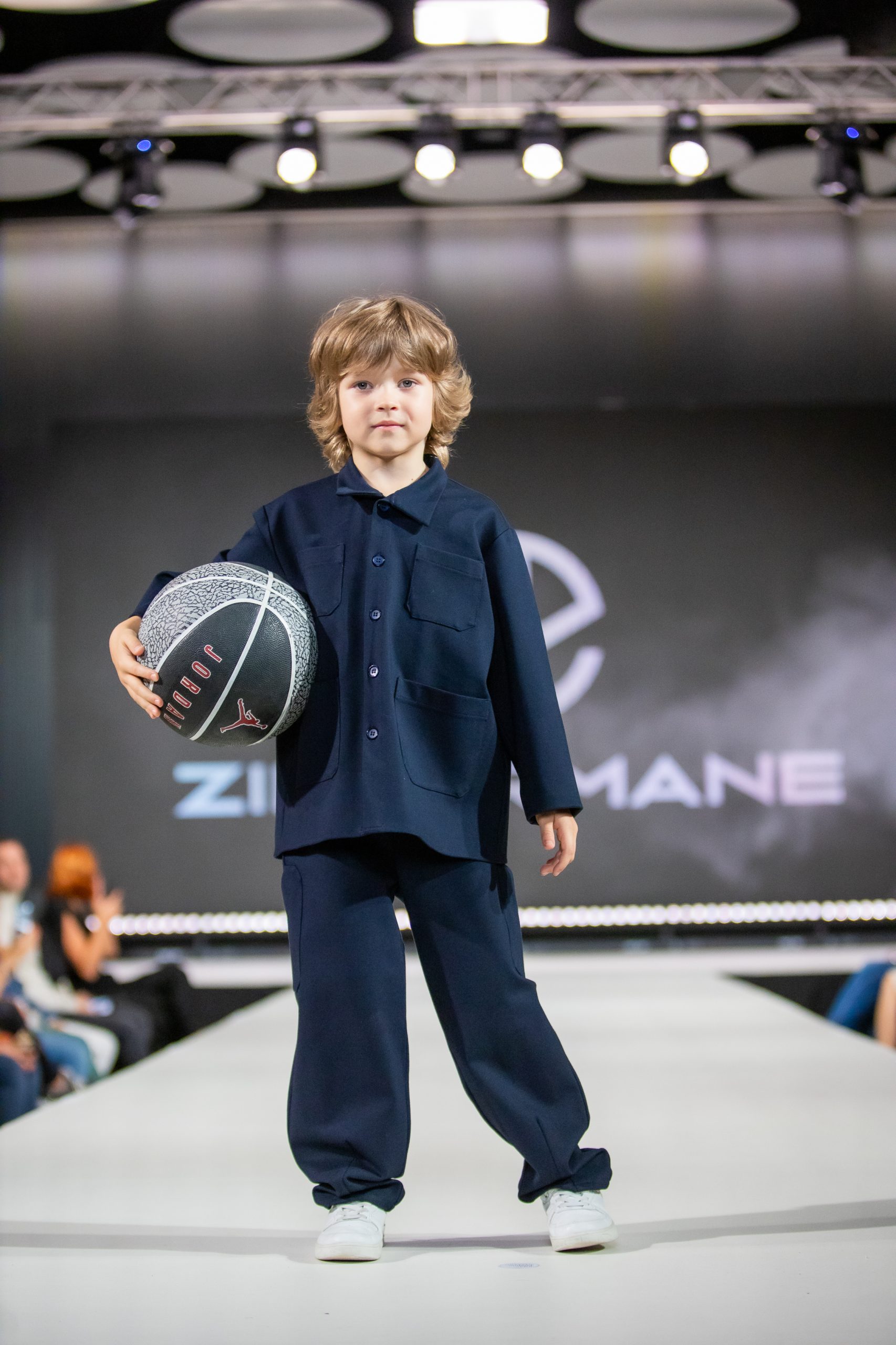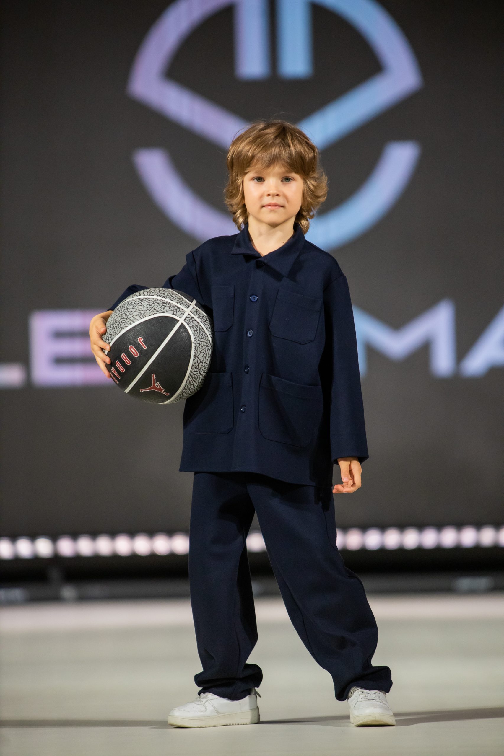 Set with an overshirt and a pair of trousers in a soft weave made from a cotton blend. Overshirt with a collar and buttons down the front. Dropped shoulders and loose sleeves.   Relaxed fit trousers through the hip and thigh with tapered legs. Elasticated, regulated waist with a fake fly. Diagonal front and open leg pockets.